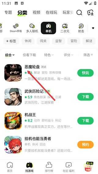 3、在单机游戏列表里,点击你要找的条目(比如《恶魔轮盘》),就能进入对应的详情页面。