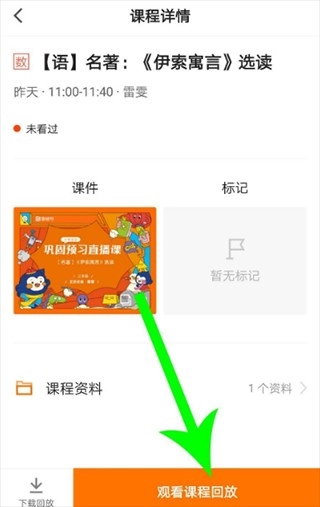 5、进入课程详情页面后,点击“观看课程回放”按钮,即可观看直播课的回放内容。