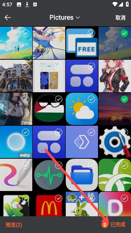4、在设备上任意选择两张照片之后,点击“已完成”