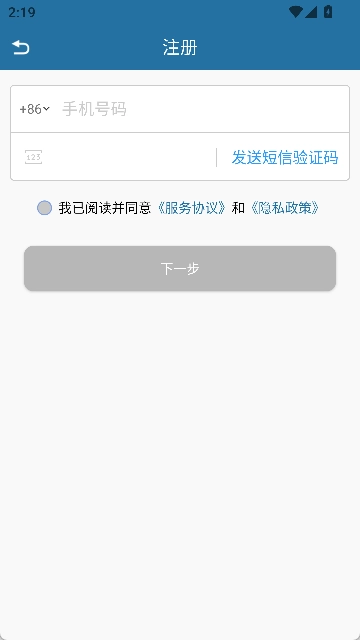 3.输入账号与验证码,勾选“我已阅读并同意”选项,点击下一步,依照流程完成注册即可。