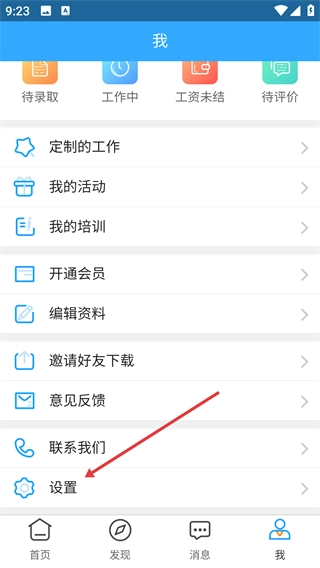 1、进入“我”的页面后,找到并点击【设置】选项,即可进入应用的设置功能界面。