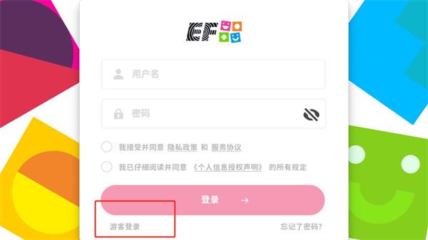 2、进入登录界面后,我们可以先选择“游客登录”来试用一下软件。