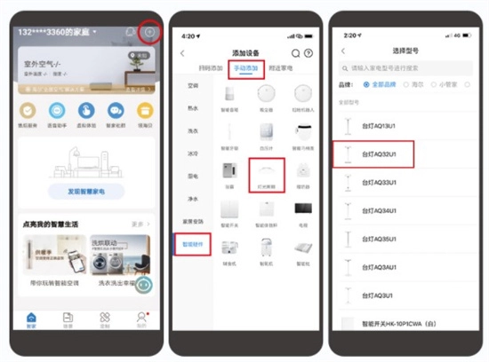4、按顺序选择“手动添加”→“智能硬件”→“灯光照明”。