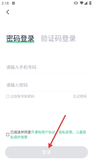 3、选择通过密码或验证码进行登录的方式,填写账号与密码,勾选相关协议后点击【登录】按钮,即可完成账号登录操作。