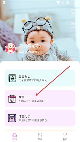 1、点击【大事日记】选项,即可进入专门用于记录各类纪念日的功能页面。