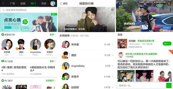 2015年11月,爱奇艺泡泡社区正式推出,仅用半年时间,就已有超5亿粉丝入驻。作为国内规模最大的在线视频娱乐社区,泡泡依托优质的明星资源以及内容与明星联动的机制,迅速聚拢了核心粉丝群体。近期,随着《太阳的后裔》《最好的我们》《余罪》《奔跑吧兄弟4》等热门剧集与综艺的热播,爱奇艺借助独家的优势资源,为泡泡用户创造了与宋仲基、刘昊然、Angelababy、陈柏霖、李易峰等众多明星进行线上线下零距离互动的机会,粉丝们参与热情高涨。如今,泡泡已汇集了数百个活跃度极高的明星粉丝圈子。在泡泡平台上,粉丝们不仅能获得与偶像见面的机会,还能和自己喜爱的明星一同观看热门剧集与综艺,让明星与粉丝相伴,真正融入粉丝的日常生活。