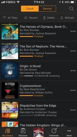 2、打开Audible后,进入软件就能看到书单界面。