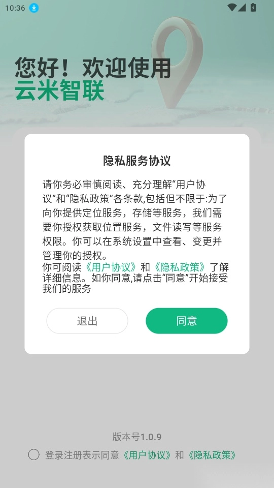 打开软件阅读“隐私服务协议”点击“同意”进入