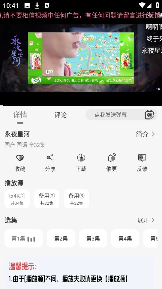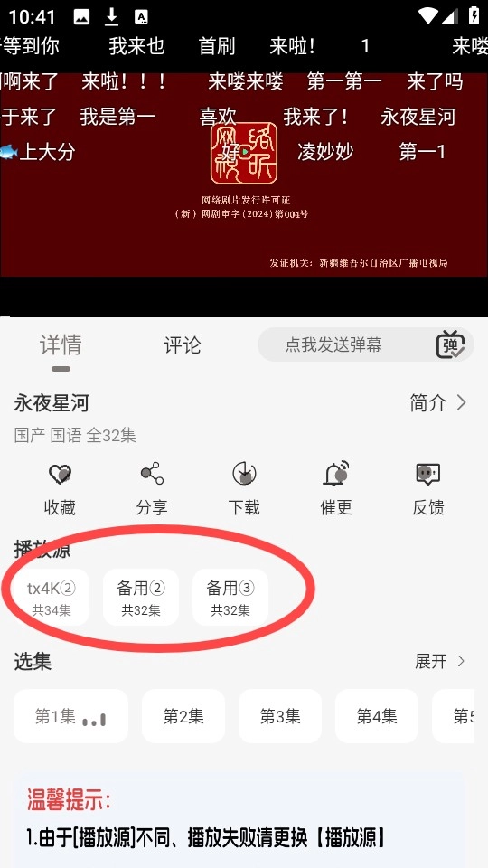 缓存完成后就能不受时间地点限制免费观看,要是播放不够流畅还能切换播放源。