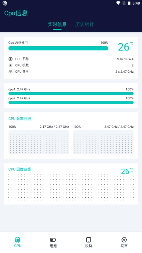 在CPU设备信息软件里,最核心的功能当属CPU实时监控了,这在排查异常状况时特别实用——通过变化曲线,我们能快速定位问题。另外,使用这类工具无需进行root操作,能给设备安全带来更可靠的保障。