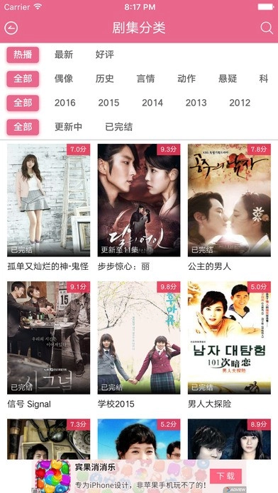 这款应用能与韩国SBS、KBS、TVN、MBC等主流电视台同步更新剧集,是追剧爱好者的首选。