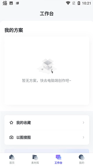 4、点击工作台,这里可以查看自己的方案和收藏。