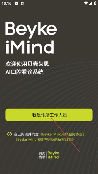 2、选择【我是诊所工作人员】这一身份,勾选“已阅读协议”选项后,即可进入该身份对应的登录入口页面。