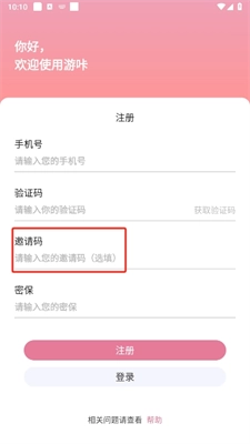 3、在注册界面的【邀请码】一栏可以填写邀请码。
