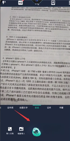 对准需扫描的内容,用相机镜头拍摄;