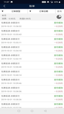 3、账户明细可按订单日期或类型查询。