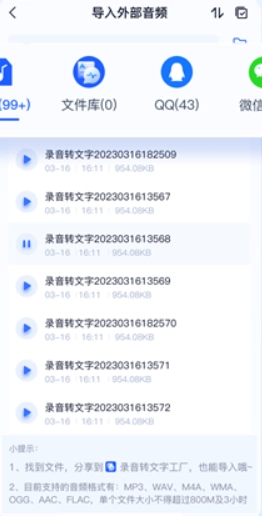 1. 录音导入:可导入WAV、MP3、AMR等多种音频格式。