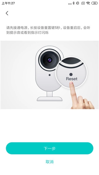 先接通设备的电源,接着长按设备上的重置键5秒钟,等设备重启完成后,就会出现指示灯闪烁或者发出提示音的情况。
