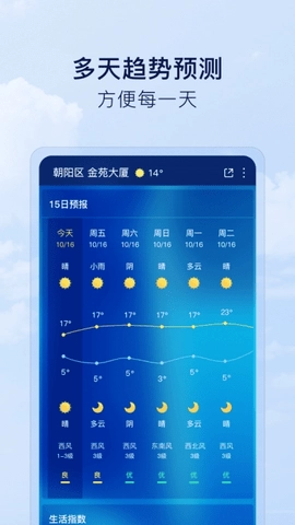 2、提供长达15天的天气预测服务,让您提前知晓晴雨变化,为日常生活做好规划。