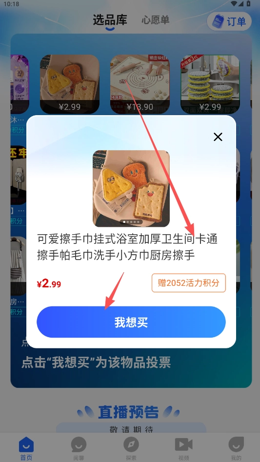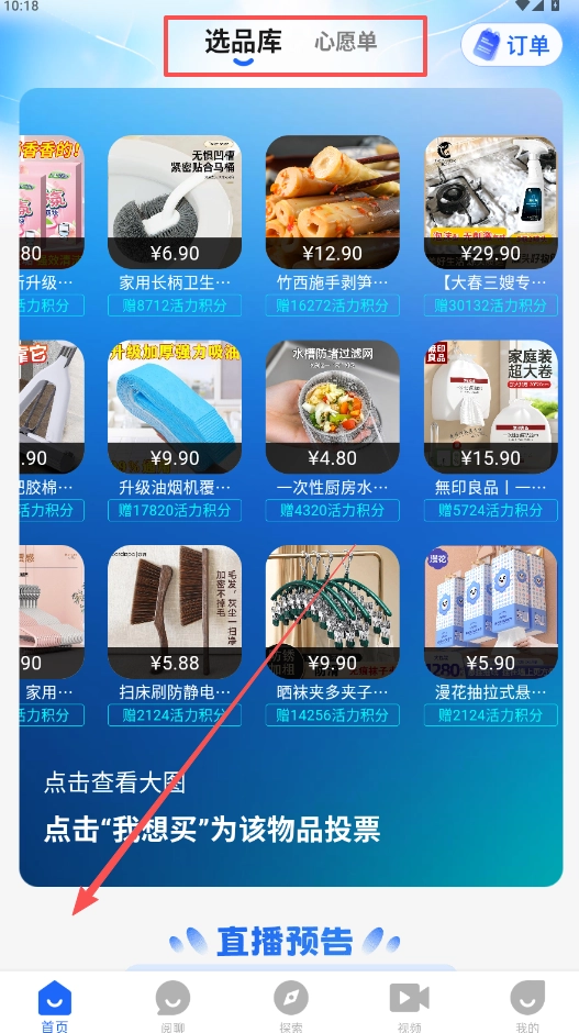 3、注册完成后自动登录,进入首页后分别查看“选品库”和“心愿单”。