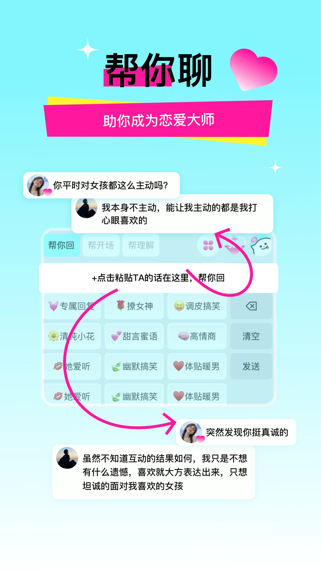 灵犀键盘不只是一款普通的聊天工具,而是功能全面的社交助手。用户可以通过它获取专属恋爱课程,提升情商与社交能力,进而在恋爱关系中占据主动。学习并运用这些课程后,用户能更精准地理解对方的情感需求,提高沟通品质。其智能回复功能,能让用户在遇到尴尬话题时快速找到恰当回应,有效避免冷场和不必要的误会。这些优势让用户在社交场合中更加从容自信。
