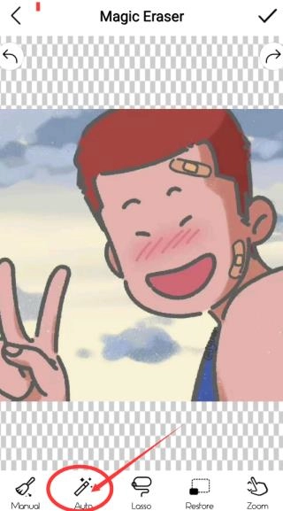 3、进入图片编辑页面后,底部会呈现多种工具选项,点击其中的“Auto”(自动模式),即可进入智能抠图界面。