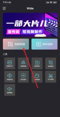 打开 Wide 应用,点击【视频剪辑】功能入口。