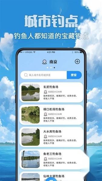 1、地图功能支持用户查找周边的钓鱼地点,还能查看交通路线、最佳垂钓季节等详细信息。
