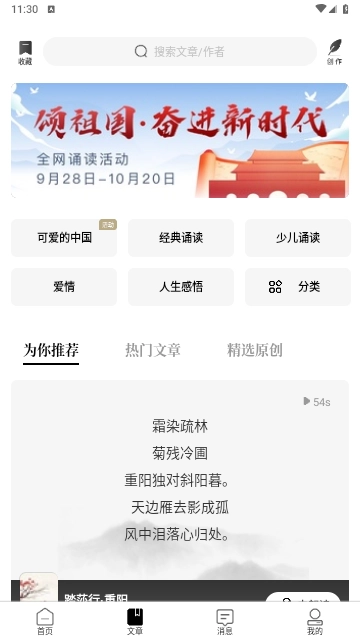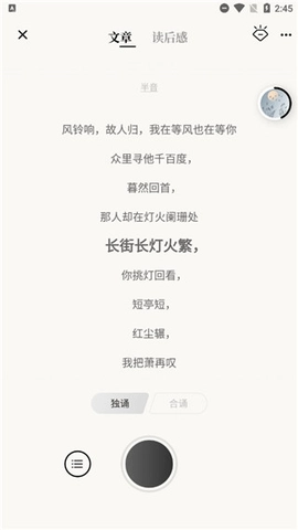 诗词创作板块:用户能够上传个人原创的诗词作品,供其他用户进行朗读与交流互动。