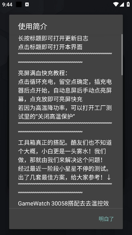 2、进入软件后阅读相关的说明,点击明白了