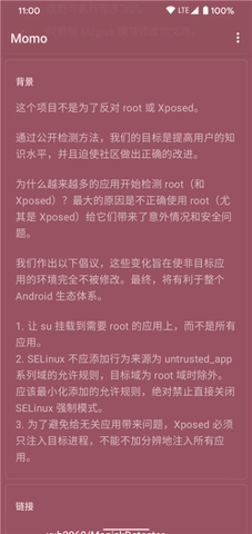 momo环境检测4.4.2版本是一款聚焦移动设备环境安全与稳定性的应用,助力用户全面掌握设备当前的运行状况,排查潜在的风险隐患,并给出对应的优化建议,从而增强设备的安全性与可靠性。借助该工具对系统环境进行深度剖析,可有效防范恶意篡改,保障设备在安全可控的环境中使用。此应用通过多元检测技术,为用户呈现详尽的环境报告,让用户能更精准地管理自己的设备。