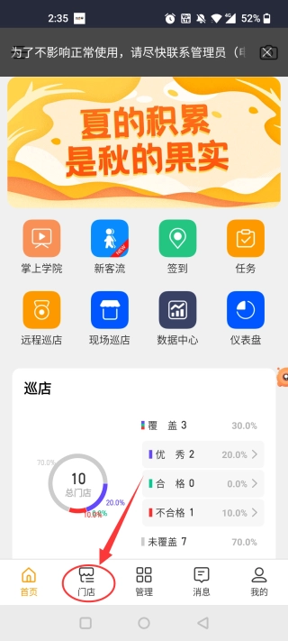 1、首先在本站下载好软件后,使用您的号码注册并登录软件,进入主页面,选择“门店”选项。