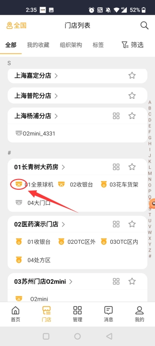 2、接着点击你所管理门店的任意一个摄像头,再点击该摄像头的图像。
