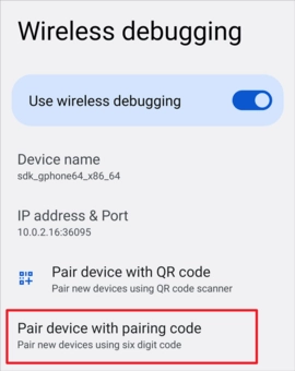 3、点按“无线调试”中的“使用配对码配对设备”