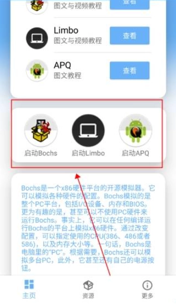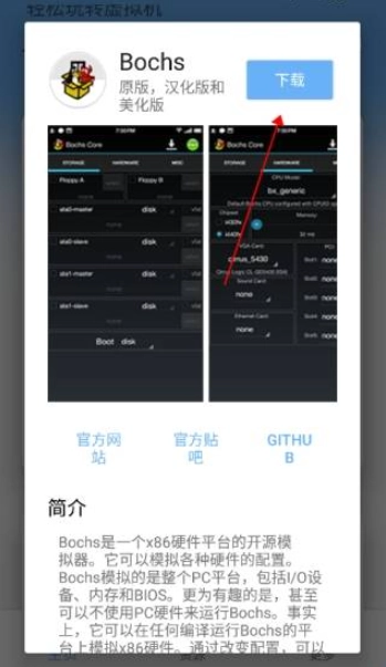 2、以bochs为例,进入后会显示该虚拟机的简介,点击