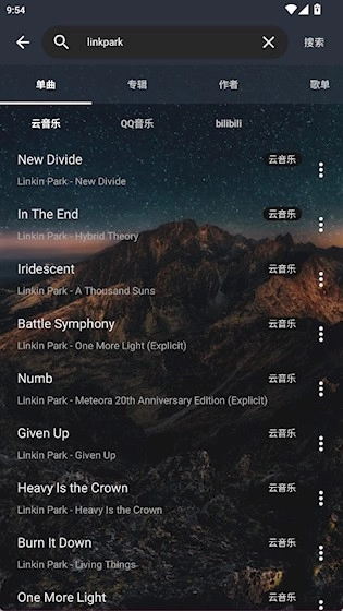 终于不用在几首音乐之间反复切换了,这个聚合搜索确实很实用,想听的歌曲差不多都能搜到。