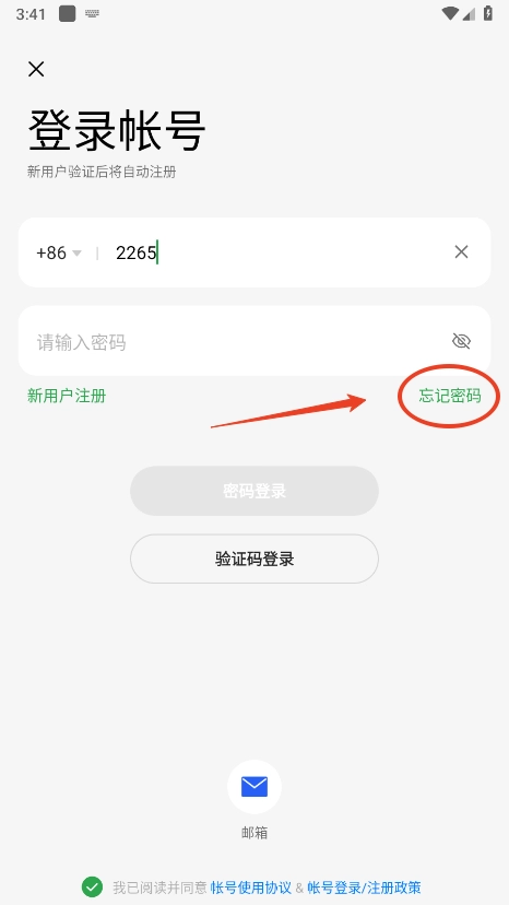 选择“忘记密码”;