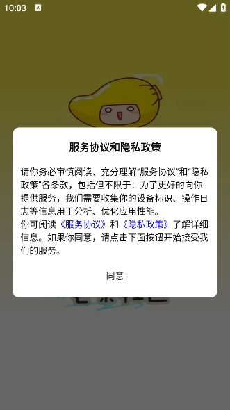 2、打开进入软件,点击同意隐私政策