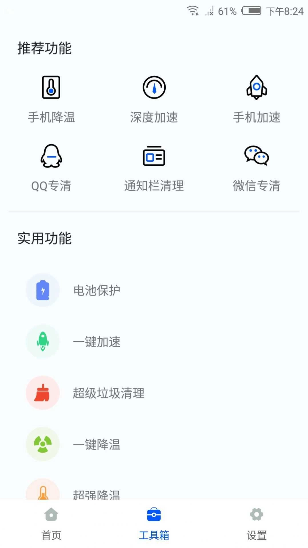 应用借助CPU降温与内存加速的手段,实现整体的降温和加速效果。