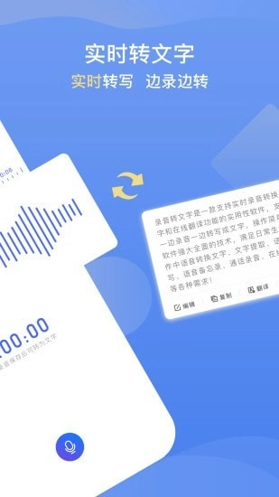 1、录音转文字极速版是一款集成了“录音转文字、专业录音、在线翻译、音频剪切、文字合成配音”等多种实用功能的强大软件!