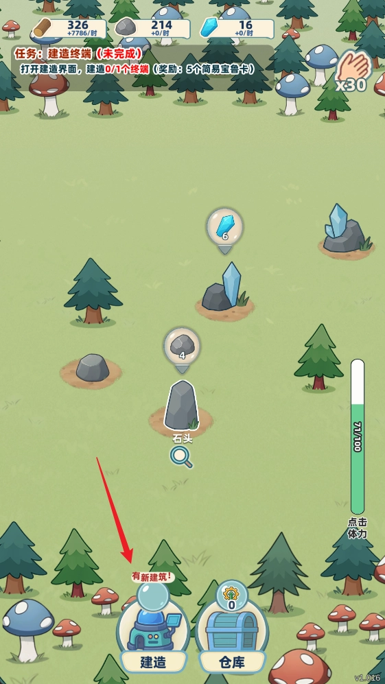 回到基地后,可点击地图里的树木或石头来砍伐、开凿,这样就能快速得到建设需要的材料。