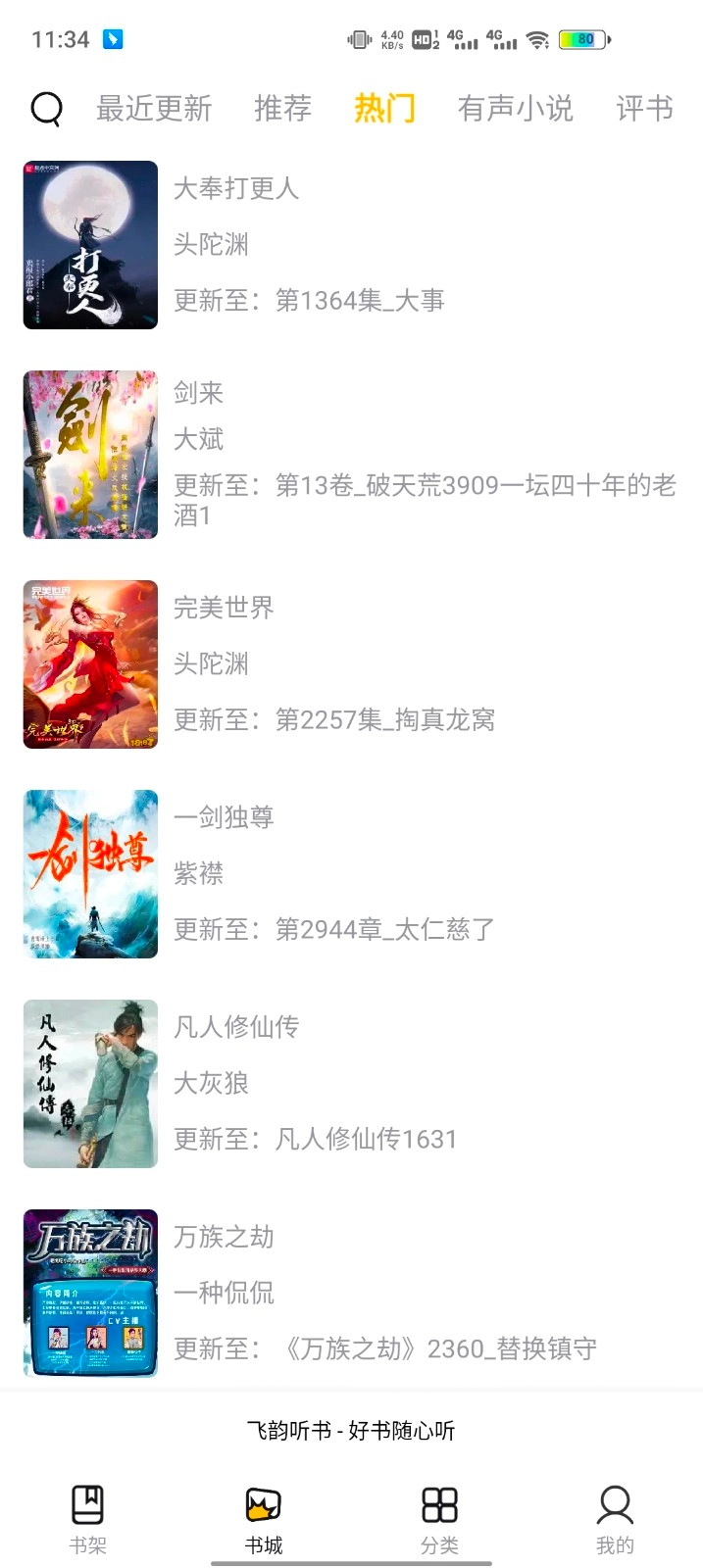 1、飞韵听书能助力用户更顺畅地开展阅读,精彩的有声小说可随时播放。