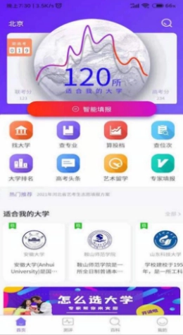 2、对用户的成绩展开全面综合的分析,为其挑选最适合且优质的大学,助力用户开拓更广阔的未来发展空间。