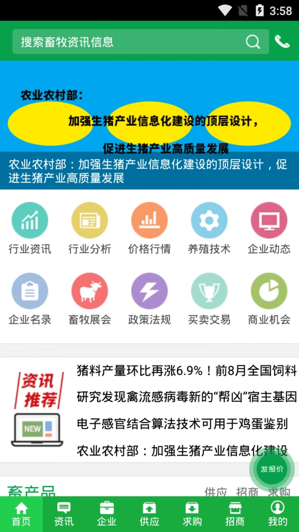 2、资讯及时,该软件会第一时间更新畜牧行业的各类资讯,使用户能够最快掌握行业动态,以便及时为自身的养殖、商业发展等方面作出相应调整。
