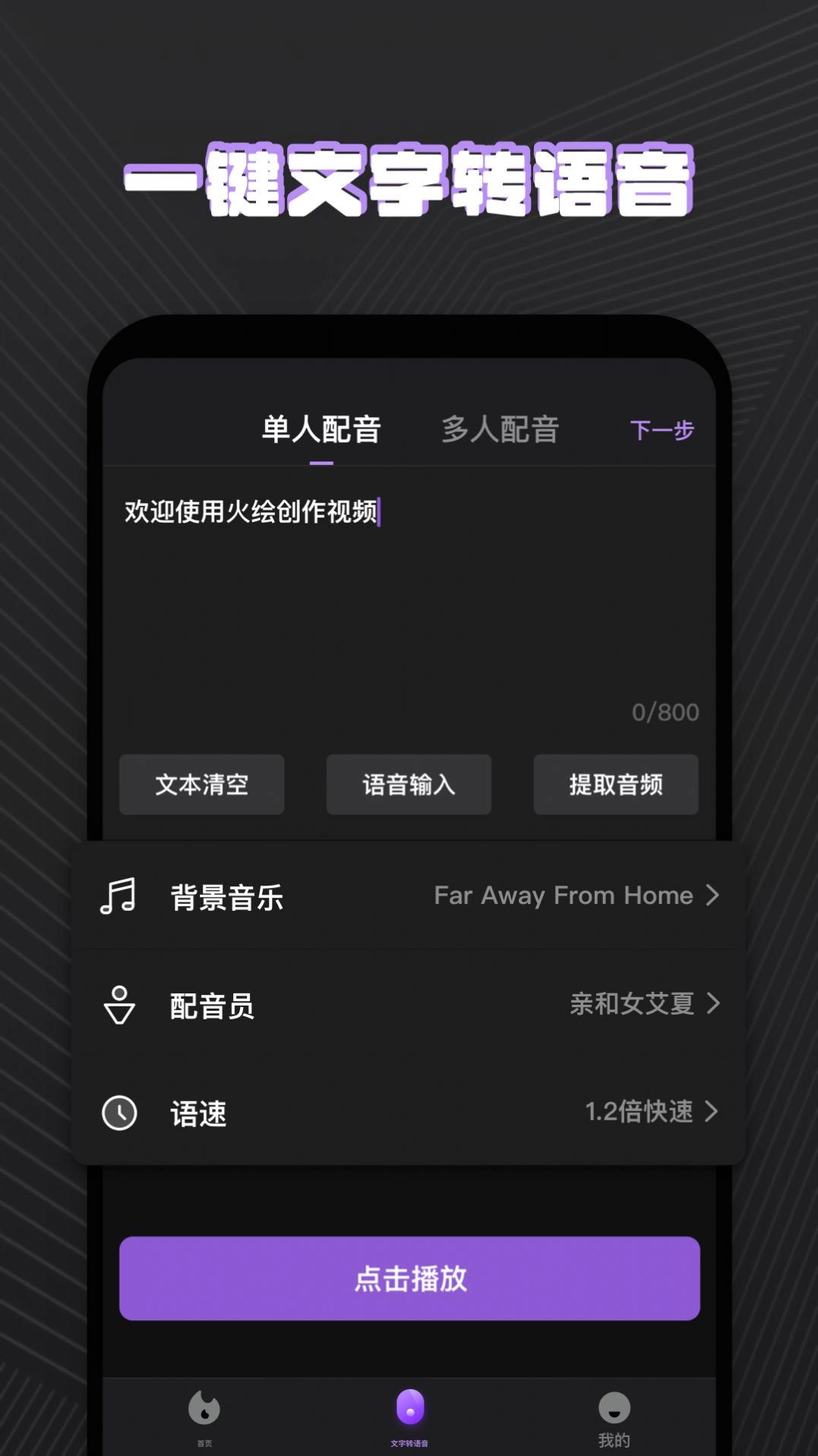 2、一键文字转语音,玩转高质量特色视频。