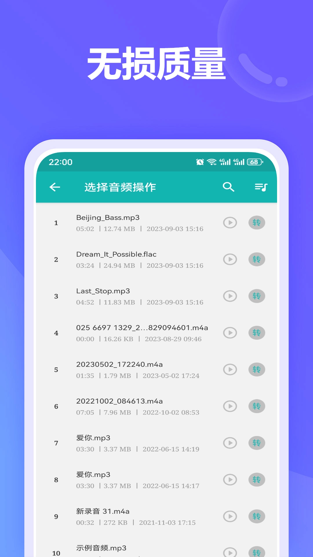 格式转换:支持多种主流音频格式转换