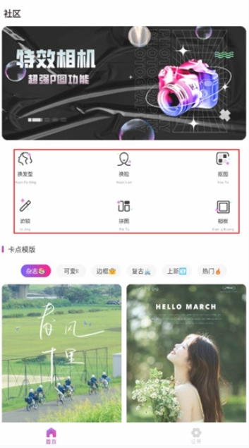 1、相机首页设有换发型、美颜、P图等多种功能,用户可根据自身需求灵活选用