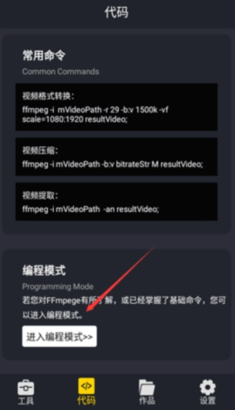 3、进入编程模式后,可借助代码编辑来转换视频,这样能提升效率。