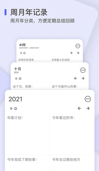 多维度时间管理:具备日、周、月、年多层级的规划与总结功能,可助力目标分解与复盘工作的开展