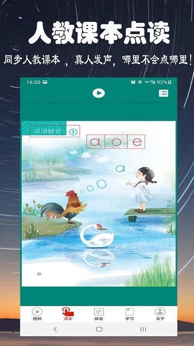 2、更有视频教学,真人发声让孩子学拼音事半功倍